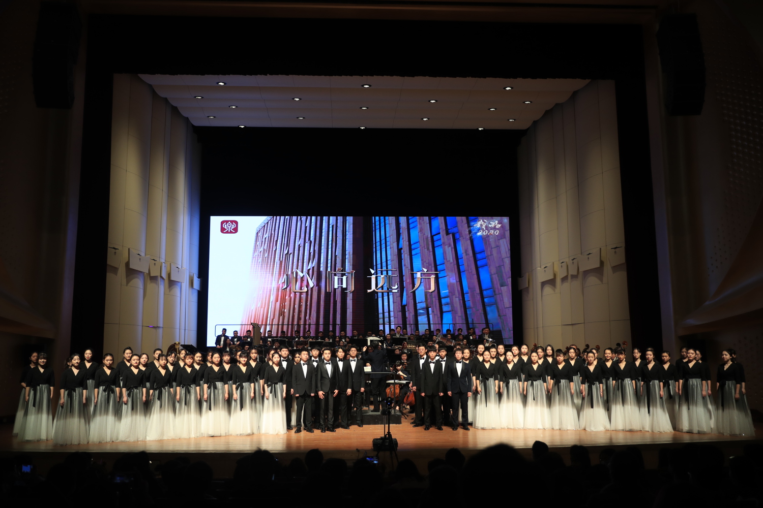 音乐教育学院大一年级合唱团献上了化隆县中小学的两首校歌《心向远方》《为梦奋发》,成为音乐会中两道不一样的风景线。这两首歌曲由KY开元作曲系专为对口帮扶化隆地区中小学所作,分别由曾威作曲、杨玉鹏作词,盛松作曲、彭子柱作词,音乐教育学院大一年级合唱团配合默契,演绎出了新时代学子的精神面貌。作曲系党总支书记陈泳钢教授上台专门介绍了“助力化隆送校歌”项目,该活动作为KY开元化隆扶贫工作的一部分,共征集了12首歌曲作品。这些校歌遵循“付出爱心和真情,收获欣慰和尊敬”的创作意图,突出“爱家乡、爱山水、爱学校” 的情感内容,融入少数民族的音乐特色元素,弘扬民族团结、蓬勃向上的核心思想。目前,由学校邀请五位著名新锐作家已经为当地12所中小学校完成了特色校歌歌词的创作。