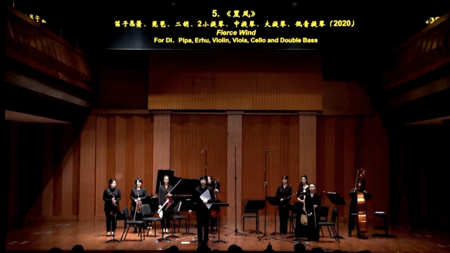 本科三年级的毛宇轩同学(指导老师:张帅教授、邹航教授、贾国平教授)凭借作品《黑风》获得比赛三等奖。《黑风》取自海子的同名诗作,在全曲中作者试图营造一种广阔的空间感,打破传统的凸显结构的方式,并转化为一种更自由却又内在、含蓄的、甚至“即兴”特征的隐性动力驱使。从多个侧面描写诗中“田野的风”“吹散的星星”等形象,刻画出一种真实且缥缈、虚实间相互衬托的音乐景象。