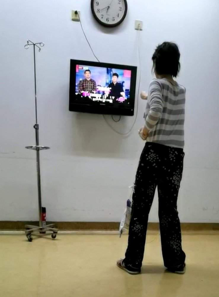 2020年6月,由于疫情原因,在将近半年未去医院复查之后的首次检查中,张媛媛获知自己始于2013年、但已基本治愈的癌症再次复发。二度袭来的癌细胞迅速扩散。9月底开始出现肝腹水等并发症,国庆期间每天抽水1000毫升。在生命的最后时光里,她拖着病体频繁往返于家、医院、学校之间。虽然她十分积极锻炼身体,常去公园走路、晒太阳,挂着排水袋练习太极八段锦(图1),然而为了避免腹积水过多,她不得不严格控制进食量,终究挡不住癌细胞的侵蚀,身体抵抗力由此急剧下降。从发现癌症复发,到最终辞世,尚不足6个月。