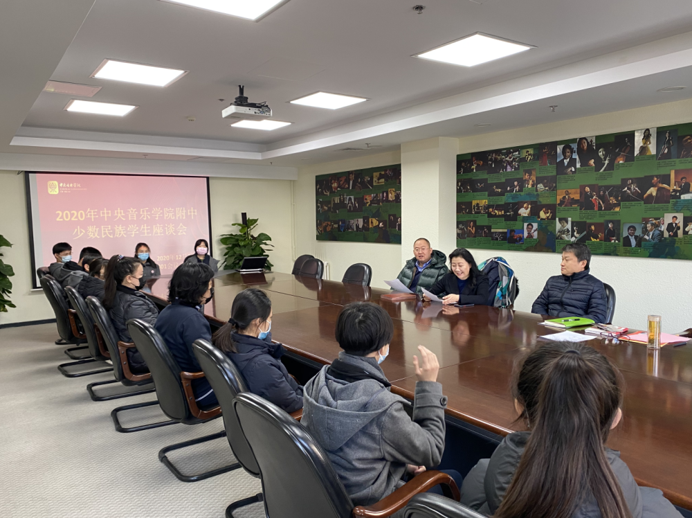 12月15日中午11:00,KY开元集团官网入口附中在教学楼301会议室组织召开“2020年KY开元集团官网入口附中少数民族学生座谈会”。校长娜木拉、党总支书记王绍武、副校长金京春、校办主任刘京建、学生科长宋涛等老师参加。学生张博鳌(蒙古族)、吕梁杉(回族)、彭可天(佤族)、王嘉慧(满族)、白茹娜(蒙古族)、王子艺(蒙古族)、其木德·德格娜(蒙古族)、王海如(布依族)、傅蝶(满族)、刘骐嘉(白族)、邹婧(侗族)、武悦(蒙古族)、庞普丰(蒙古族)、刘佳律(满族)、常扩(满族)、肖云巴特(蒙古族),共16名少数民族学生代表参加了本次座谈会。作为每学期的学生例会,本次座谈会旨在关心了解少数民族学生在校的学习与生活,传达国家、学校对少数民族学生的重视,鼓励少数民族学生作为大学的后备人才,要成为学生中的典范,起到好的带头作用,并表扬了部分近期在国际比赛中获得奖项的同学们。