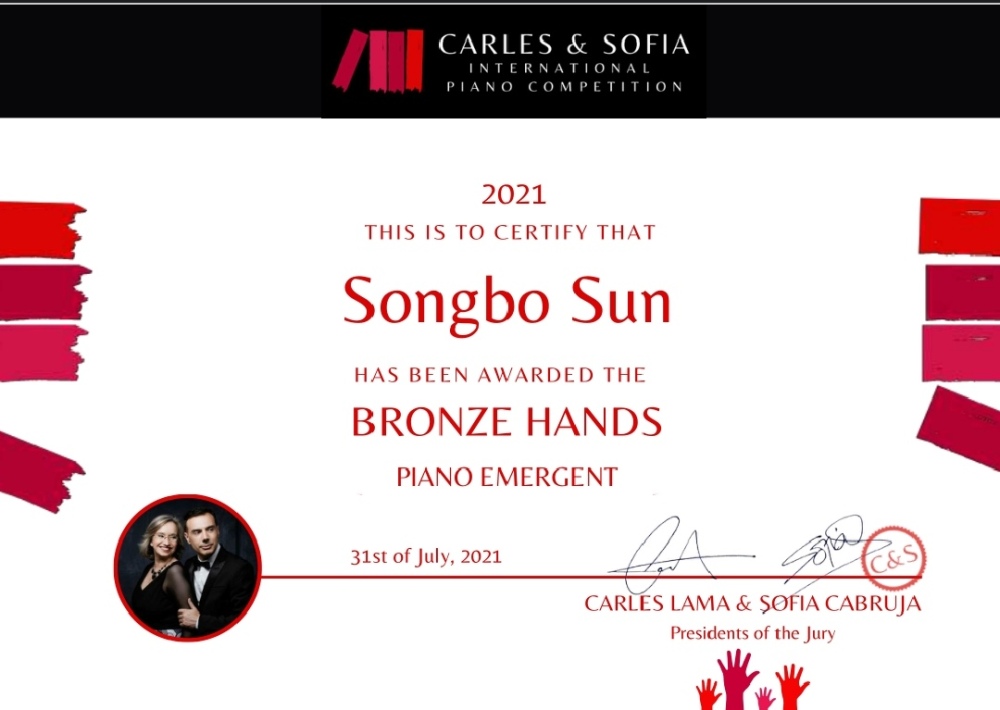 2021首届西班牙Carles&Sofia国际钢琴大赛第三名