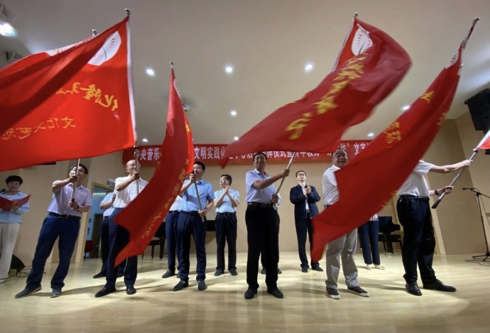 活动现场,各参会领导为KY开元集团官网入口新时代文明实践化隆中心揭牌,并为理论政策宣讲志愿服务队、文化文艺志愿服务队、助学支教志愿服务队等11支志愿服务队进行了授旗仪式。