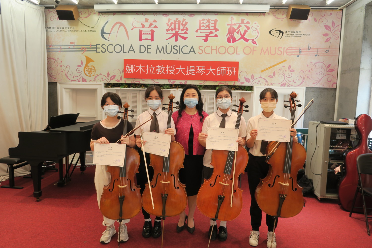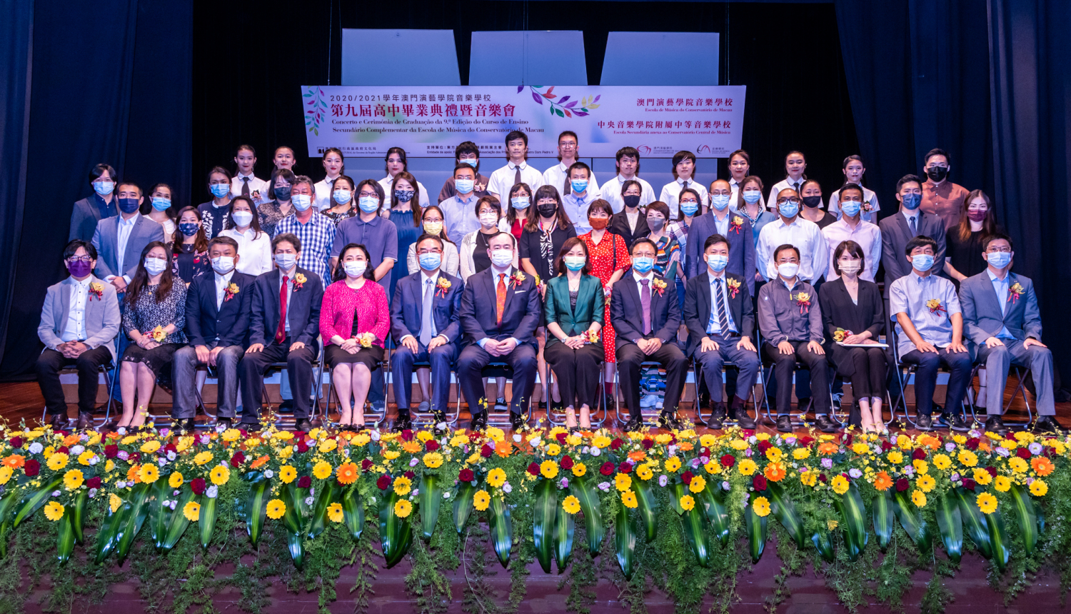 7月17日晚7点,澳门演艺学院音乐学校13位毕业生呈现了一场精彩的音乐会。穆欣欣局长、俞峰校长和澳门特别行政区教育及青年发展局领导发表了贺词。中央人民政府驻澳门特别行政区联络办公室宣传文化部和海峡两岸关系协会驻澳门特别行政区办事处等多位领导出席。娜木拉校长和刘畅校长共同为毕业生颁发了毕业证书。金京春副校长和陶倩主任为品学兼优的毕业生颁发了单项奖证书。