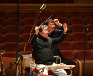 叶小纲、余隆与男高音布莱恩·杰德在录音现场