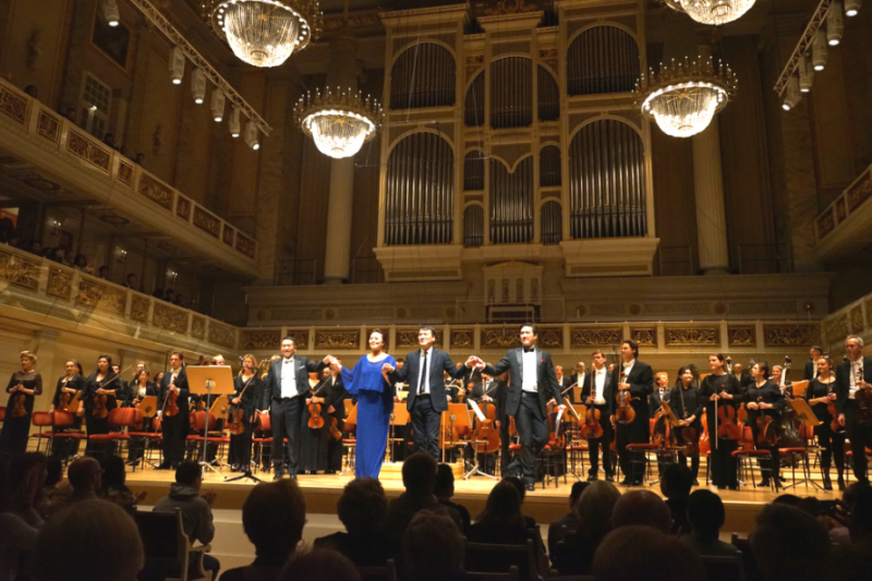 左起:指挥胡咏言、女高音栾艺天、叶小纲、男中音周正中