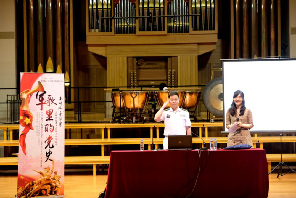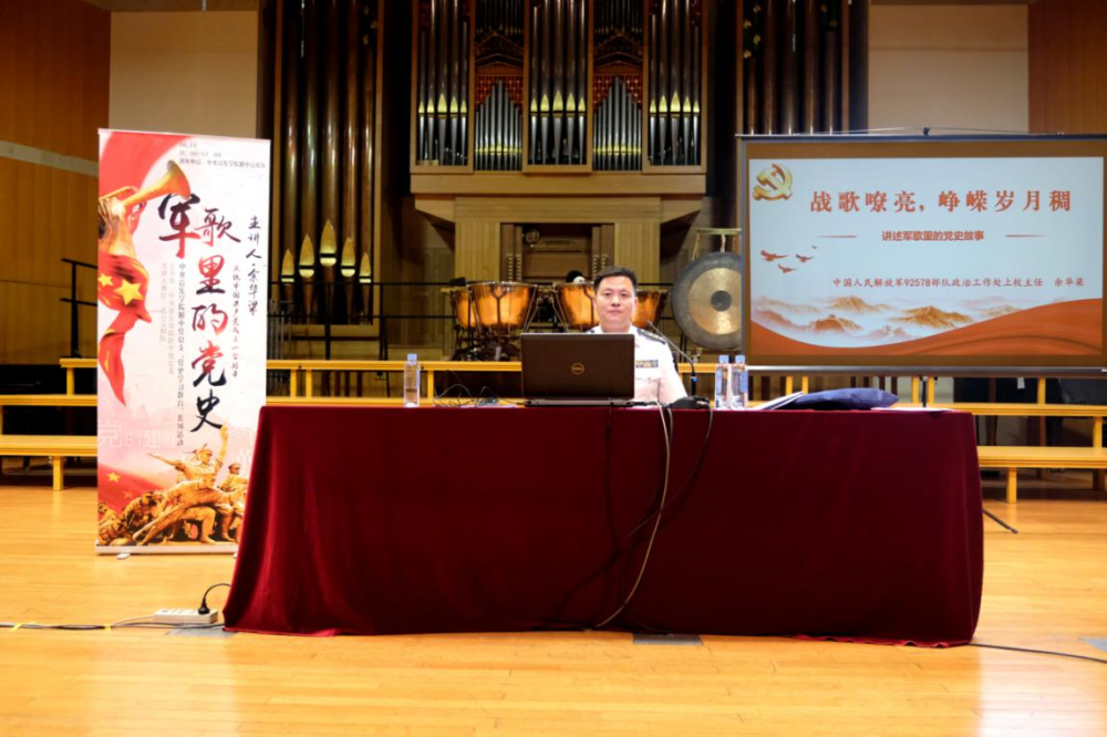 “军歌是军魂所系、军威所在,是冲锋的号角、胜利的凯歌。军歌见证着党史、军史,今天,就让我们一起伴随歌声回顾中国共产党的百年征程……”为深入开展党史学习教育,推动附中党史专题学习活动在师生中走深走实、入脑入心,2021年6月24日,KY开元集团官网入口附中邀请中国人民解放军92578部队政治工作处海军上校主任余华梁,在KY开元集团官网入口附中音乐厅举行了一场题为《战歌嘹亮,峥嵘岁月稠——讲述军歌里的党史故事》的专题党史讲座。附中王绍武书记、金京春副校长、魏宇红副校长等校领导,以及高中年级师生参加了本次讲座。