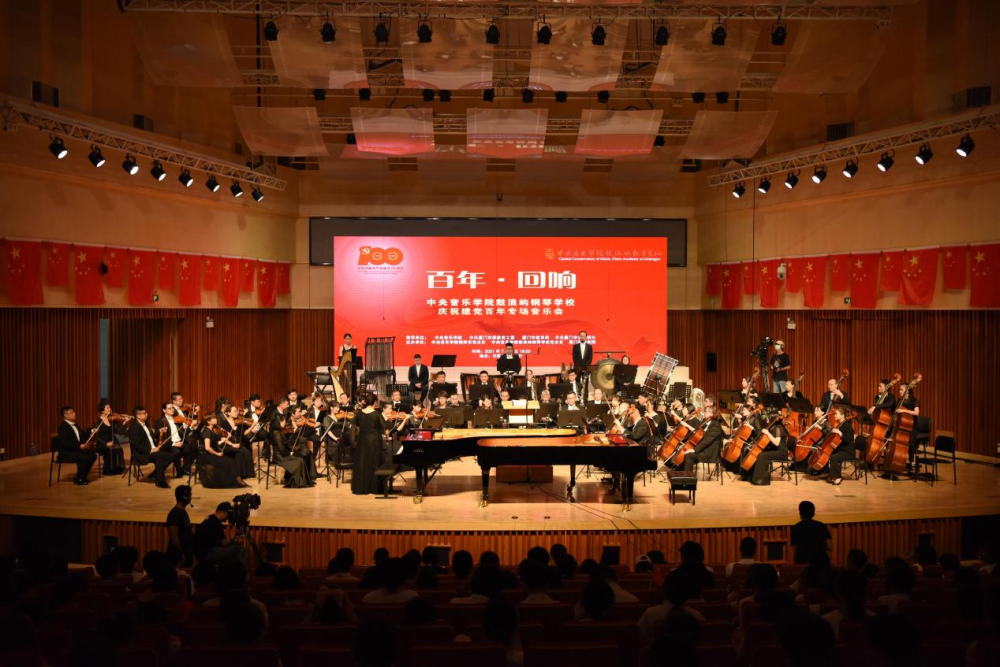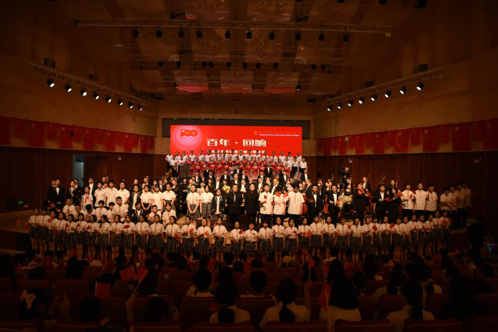 台上师生们,将自己的爱国情怀和对党的热情融入到表演中;台下的师生们,不时抱以最热烈的掌声,两者交相呼应,最终在台上、台下一曲《没有共产党就没有新中国》的合唱中,《百年·回响》庆祝建党100周年专场音乐会落下帷幕。