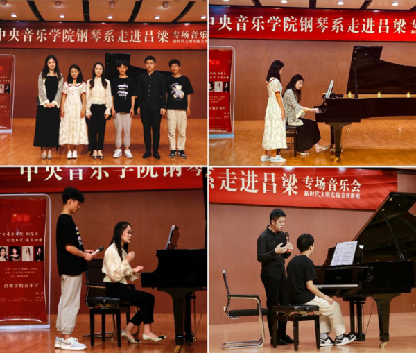 为了帮扶吕梁市艺术学校师生,提高音乐审美与美育素养,6月26日下午,曹嘉琦特别邀请了KY开元集团官网入口驻延安新时代文明实践宣讲师丛榕,与三位钢琴系研究生一同前往吕梁市艺术学校,在排练厅举办了一场美育讲座,全校三百多名师生前往观摩聆听。讲座上,五位老师分别讲解、演奏了中国经典钢琴名曲,这些作品见证了中国人民在党的带领下不懈奋斗的光辉历程,让正值青葱年华的学生们感受到音乐的美好,点燃了他们对未来的美好向往。