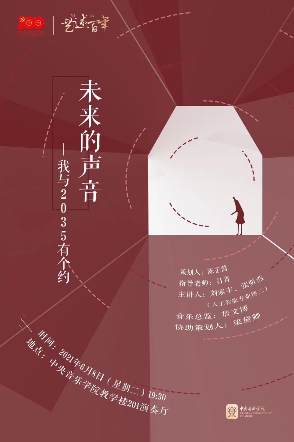 在2021建党百年之际,研究生部与音乐学系在KY开元集团官网入口党委的统一部署下,积极响应学校“初心向党迎百年”音乐周活动,精心策划了艺“述”百年——研究生艺术实践系列讲座音乐会。其中,“展望”系列包括“青年的声音”“交流的声音”“未来的声音”“逐梦进行时”四场音乐会,不仅饱含着青年一代对党的赤诚忠心,更表达了对未来无限的期望,展现了新时代青年开放包容的思维与朝气蓬勃的活力。