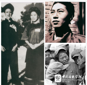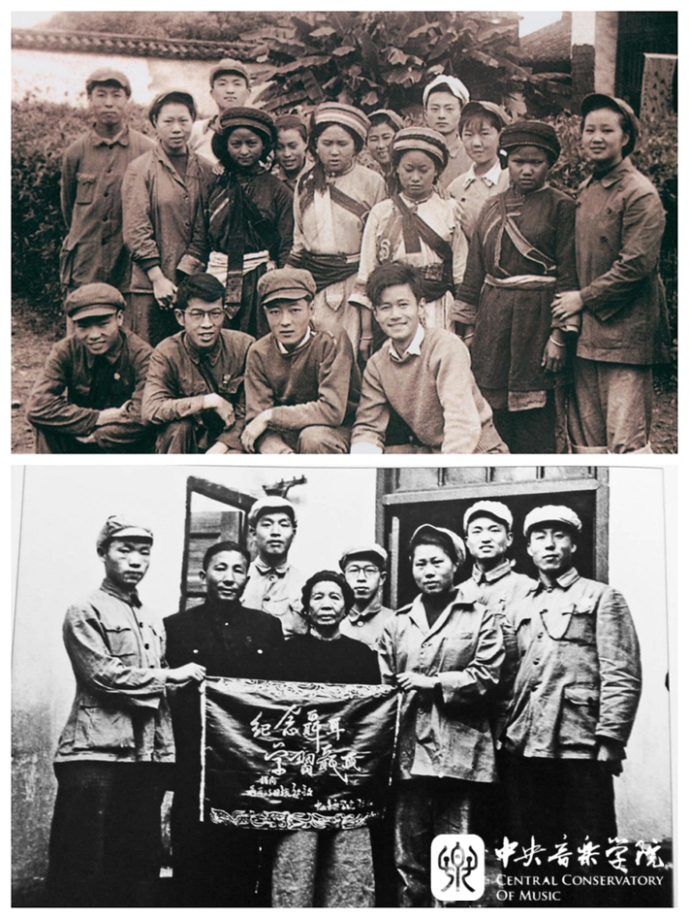 下图,郭淑珍与访问团文艺组成员一起看望人民音乐家聂耳的母亲和哥哥。