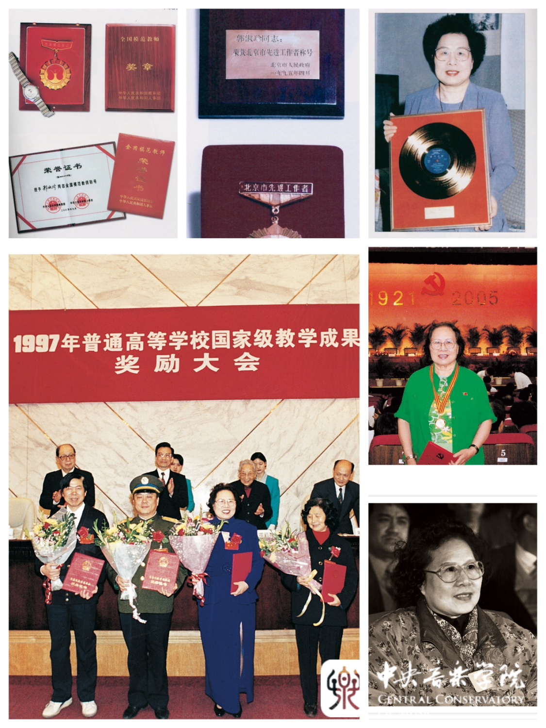 翻开郭淑珍教授的荣誉簿,一个个光荣的称号和奖项令人赞叹:1989年获首届国家金唱片奖;1996年获宝钢教育基金全国优秀教师特等奖;1997年获教育部国家级优秀教学成果一等奖;2004年获评全国模范教师;2005年获评北京高校优秀共产党员;2006年获得北京市优秀共产党员称号;2007年被中国音协授予“金钟奖”终身成就奖,获得全国十大教育英才称号;2009年获得全国高等学校教学名师称号;2012年获得北京市人民教师称号;2017年获第六届奥斯卡国际歌剧职业生涯成就奖……