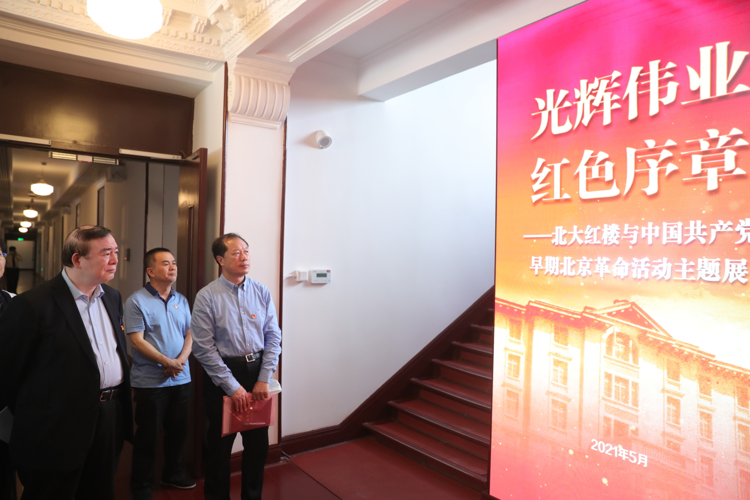 与会人员集体参观了“光辉伟业红色序章——北大红楼与中国共产党早期北京革命活动主题展”,重温以李大钊、陈独秀、毛泽东为代表的革命先辈传播马克思主义、孕育建党的光辉历史和不朽业绩。