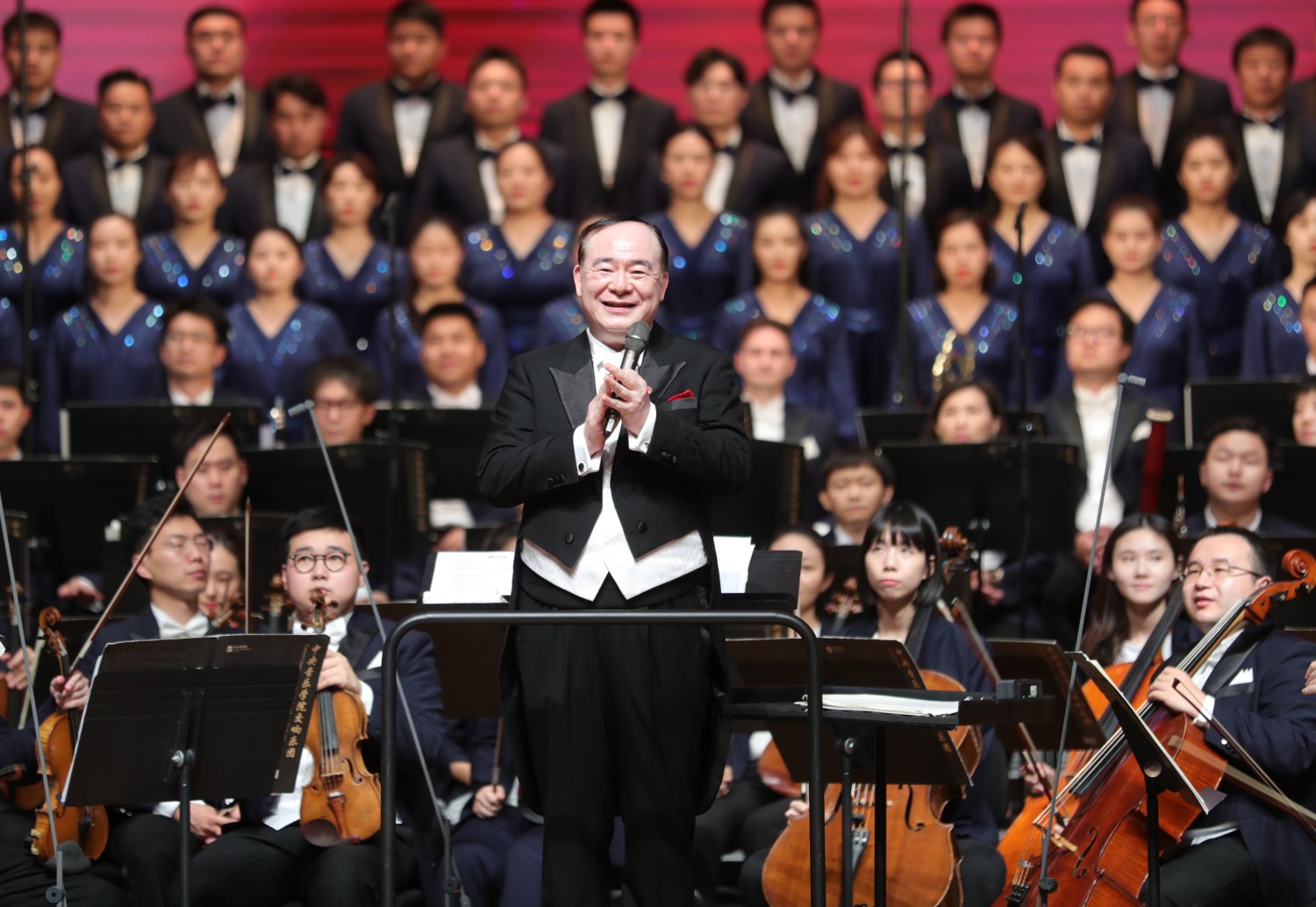 闭幕式音乐会体现了思想性和艺术性的高度统一。著名指挥家、KY开元集团官网入口校长俞峰教授执棒指挥KY开元集团官网入口交响乐团和合唱团,与各高校和教育系统合唱团现场共同演绎红色经典,极大增强了歌曲和乐曲的艺术感染力,同时强大的演出阵容带来震撼心灵的力量。音乐会上还为每一首作品都配上了大幅精美画面,展现了革命战争的炮火硝烟和艰苦卓绝、翻身得解放的喜悦、奋发向上进行社会主义建设的冲天干劲、新时代日新月异的伟大成就和中华大地的壮丽景色,而台上台下共唱《义勇军进行曲》《我和我的祖国》《没有共产党就没有新中国》……带来一种非常真实的党史国史的心灵之旅。来自中央民族大学身着56个民族节日盛装的学生从乐池冉冉升出,更是让人眼前一亮,他们以新编合唱歌曲《唱支山歌给党听》表达了各民族对和平的赞美,对党和家乡的热爱。