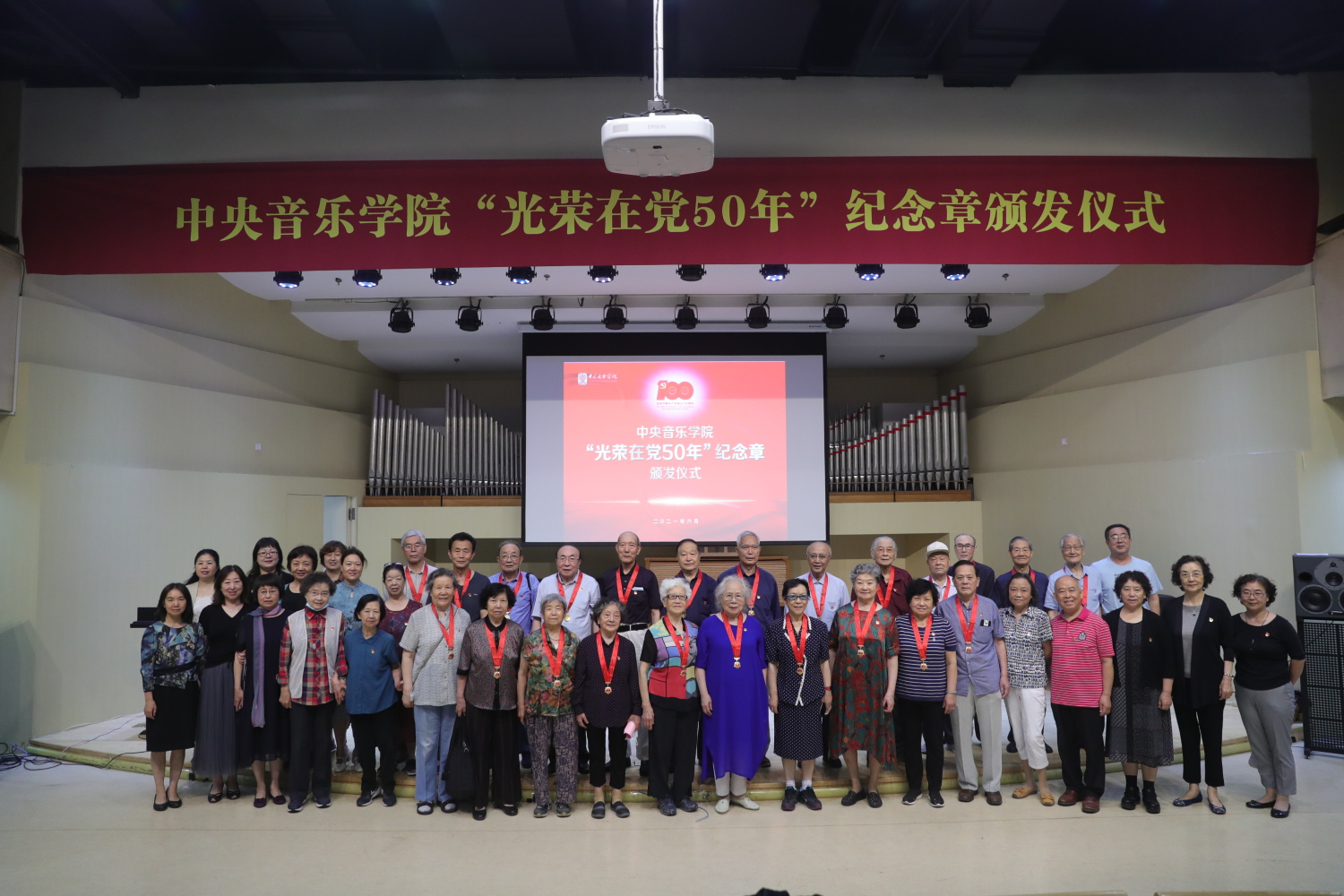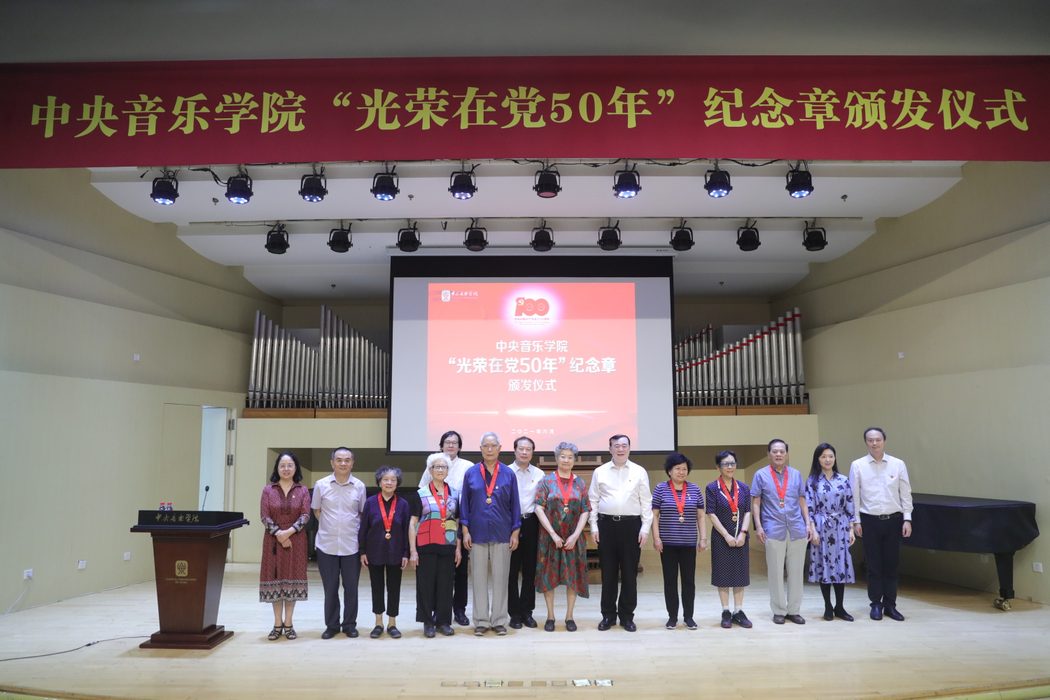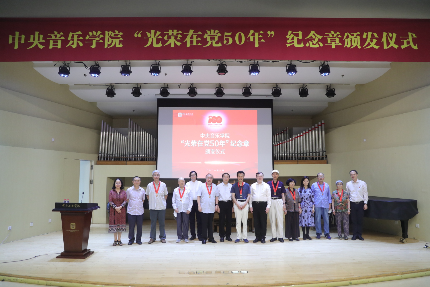 6月29日,KY开元集团官网入口“光荣在党50年”纪念章颁发仪式在教学楼201厅举行。全体校领导、纪念章获得者代表、处级干部、教职工预备党员、离退休老党员等出席仪式。颁发仪式在庄严的国歌声中拉开序幕。