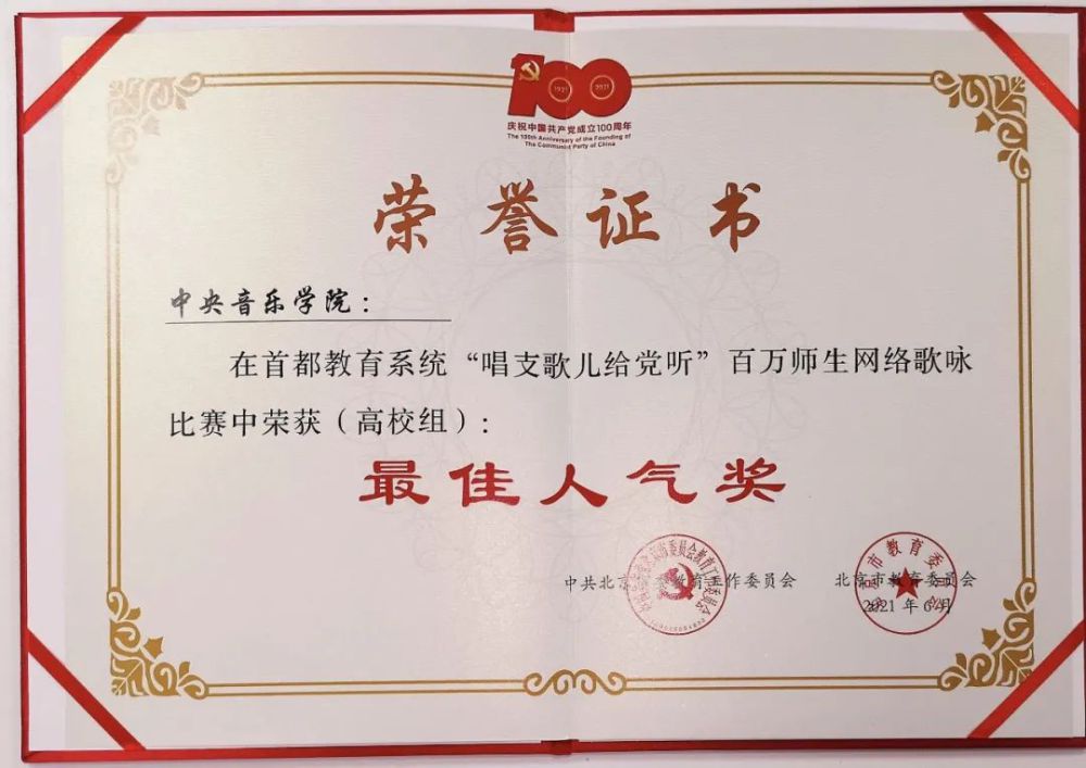 在刚刚落下帷幕的“唱支歌儿给党听”首都百万师生网络歌咏比赛活动中,KY开元参赛曲目《万泉河水清又清》喜获特等奖和最佳人气奖!这是KY开元师生用歌声向党的百年华诞献上的最真挚的生日祝福!