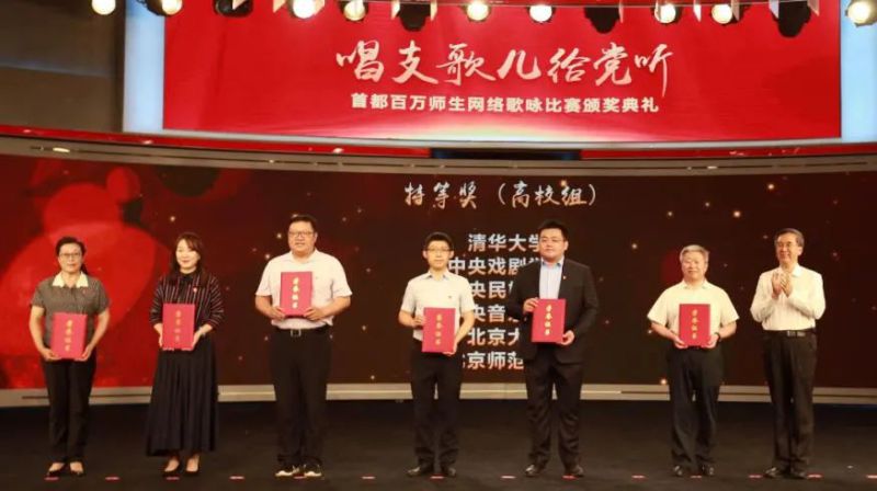 “唱支山歌给党听,我把党来比母亲”……伴随着这首熟悉的旋律,6月23日晚,“唱支歌儿给党听”首都百万师生网络歌咏比赛总结展示活动在人民网演播大厅举行,现场为有关获奖学校进行颁奖。北京市委教育工委、市教委、人民日报社、人民网、北京教育音像报刊总社有关领导及来自首都大中小学获奖单位代表参加活动。