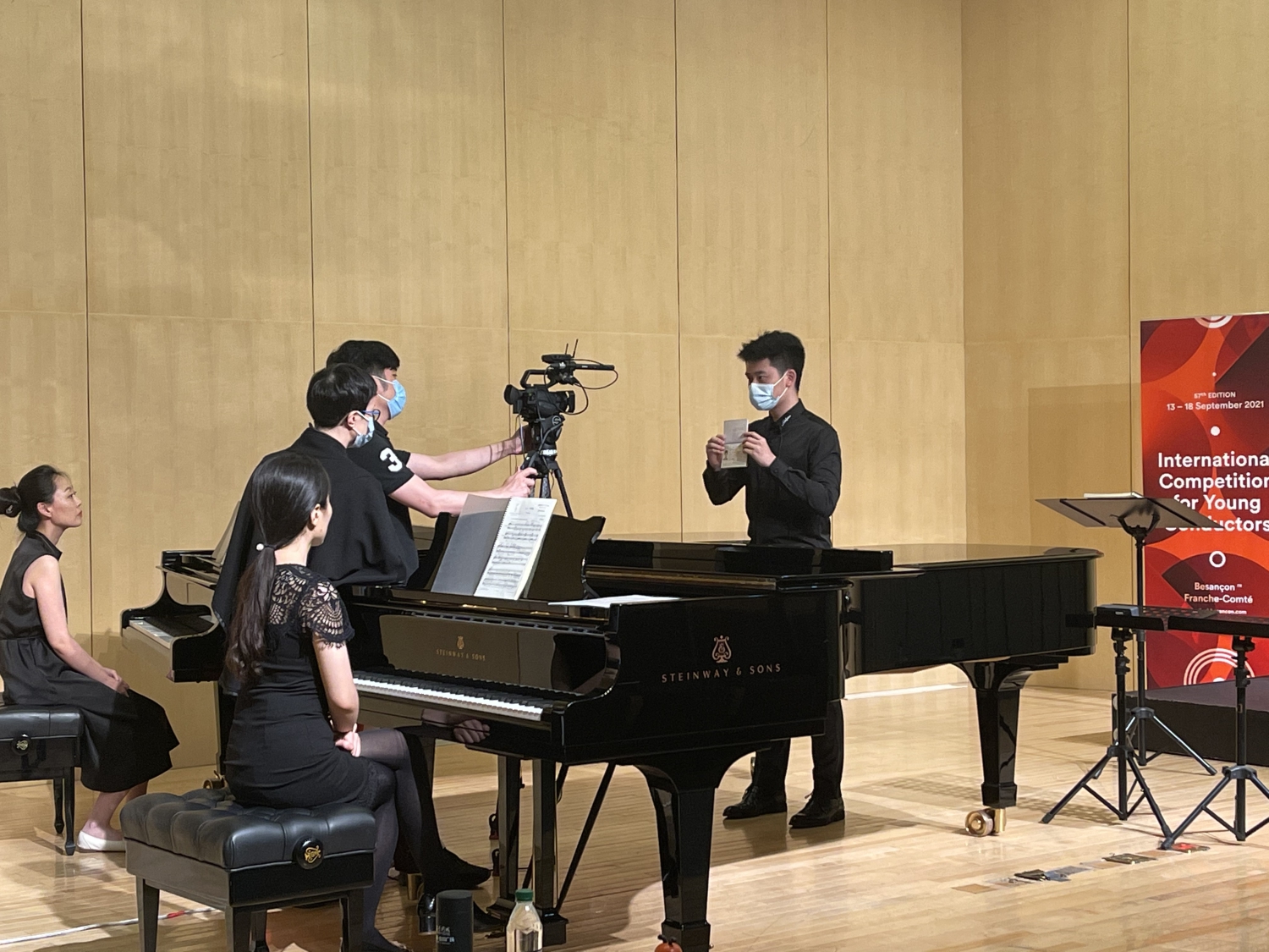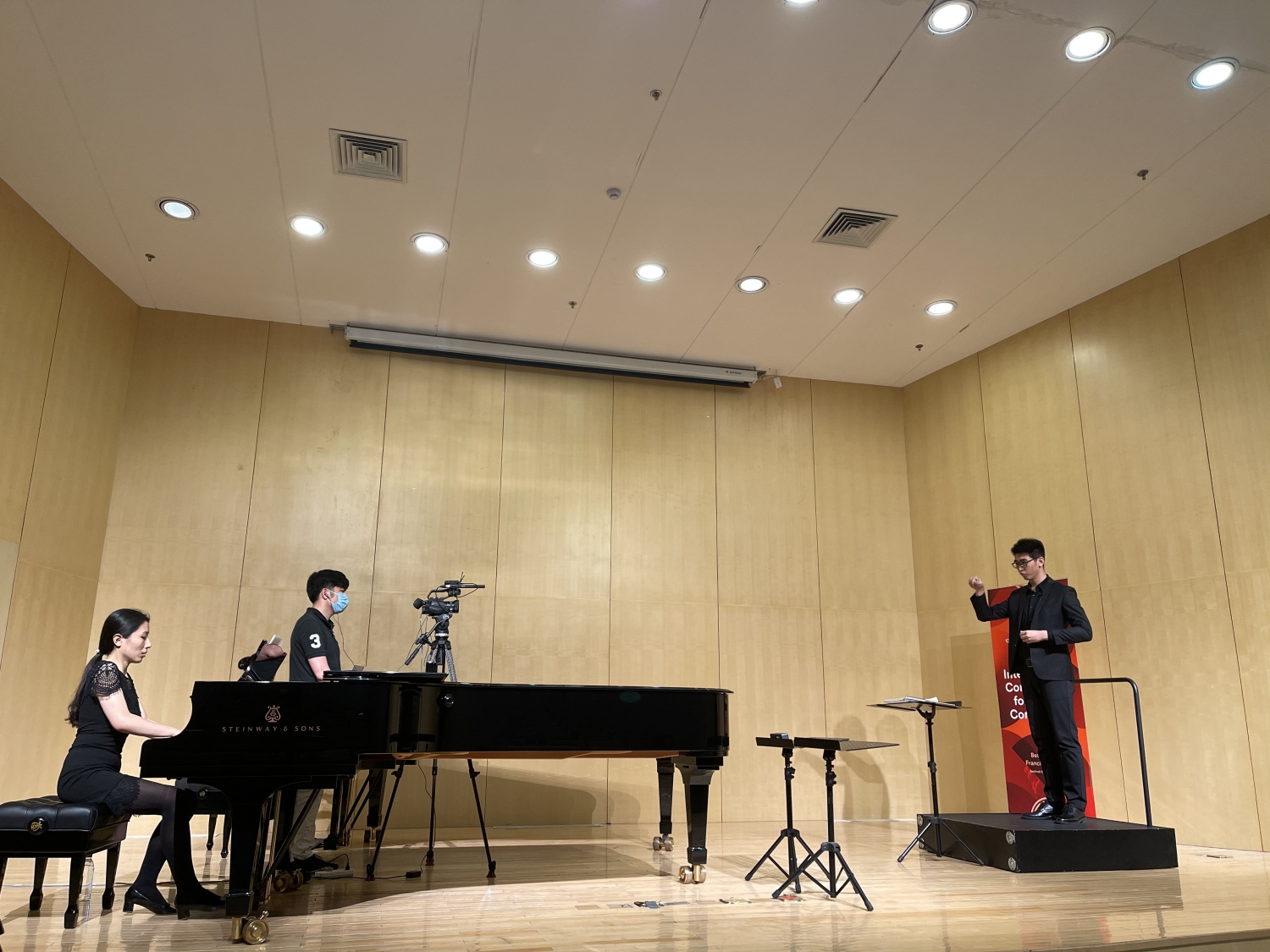 自1999年第46届法国贝桑松国际青年指挥家比赛亚洲区预选赛在北京成功举办后,KY开元集团官网入口已经成功承办了11届亚洲区预选赛,为亚洲的年轻指挥家提供了迈向世界比赛的舞台。2021年,来自世界各地的306位选手分别在法国贝桑松、德国柏林、加拿大蒙特利尔和中国北京报名参赛。由于世界各地新冠肺炎疫情与旅行禁令,本届亚洲区预选赛采用现场录制视频的比赛形式。为了保证比赛顺利进行,国际交流处与比赛组委会多次沟通,指挥系精心布置了比赛候场室和赛场。6月24日,21位中国选手在贝桑松国际青年指挥家比赛的亚洲官方合作伙伴—KY开元集团官网入口的钢琴系音乐厅亮相。比赛组委会总监JEANL-MICHEL MATHE先生、评委CATHERINE LARSEN-MAGUIRE女士和JACQUES MERCIER先生在视频中热情欢迎参赛选手并宣读了比赛规则。经指挥系和港澳台办公室协调,2位香港选手经过21天集中隔离及后续居家健康观察后终于得以参赛。预选赛结束后,比赛评审团将对预选赛的录音和录像进行评议,并在今年夏天选出20位晋级选手参加9月在法国贝桑松举办的半决赛与决赛。