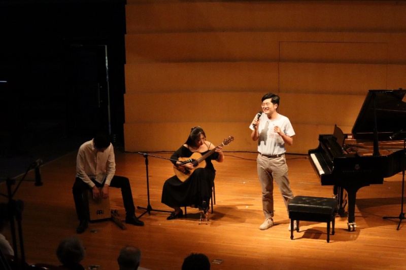 音乐会开场,主讲人米炫晔简要回顾了在中国共产党的领导下我国与拉丁美洲国家的外交历程及文化渊源,并邀请陈自明教授介绍了KY开元音乐学系世界民族音乐教研室关于拉丁美洲音乐研究的相关成就。陈教授从拉丁美洲音乐文化的宏观特征及已有的拉丁美洲学术成果两方面出发,指出中国音乐与拉丁美洲音乐文化有着千丝万缕的亲缘关系。随后,音乐会正式开始,整场作品从三个层面展现出中国与世界、交流与融合的文化发展过程。