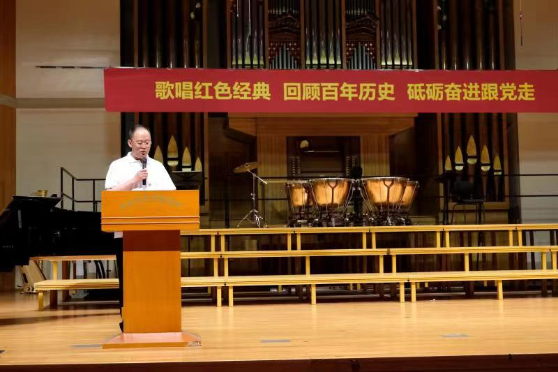 活动最后,附中党总支王绍武书记总结发言,他讲到:“KY开元集团官网入口附中作为'中国音乐家的摇篮',作为中国最重要的音乐学府之一,作为培养祖国音乐人才接班人的重要基地,肩负着用歌声、用音符传递党史、党的思想的责任和义务。星星之火可以燎原,每一个音符,每一句歌词都是对党史最生动,最鲜活的记录。”“歌唱红色经典·回顾百年历史·砥砺奋进跟党走”合唱音乐会充分发扬KY开元集团官网入口附中的专业特性,以音乐的形式梳理出党史,促使学生们能够更贴切,更近距离的接触党史,用他们最熟悉的方式学习、掌握、认识、温习党的发展史。明确作为祖国音乐接班人的责任,牢固铭记习近平总书记对青少年的期盼:“多了解中国革命、建设、改革的历史知识,多向英雄模范人物学习,热爱党、热爱祖国热爱人民,用实际行动把红色基因代代传下去。”以思想武装自己,为将来做好人民的音乐家打下坚实而牢固的思想基础。同时增强全校教职工的爱党情怀,激励全体教职工为国育才、为党育人的使命担当。