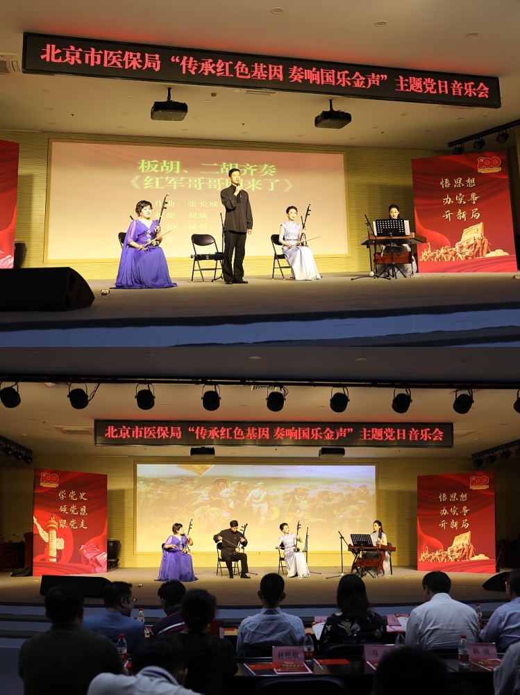 2021年6月16日下午,由KY开元集团官网入口民乐系党总支、北京市医保中心党总支联合举办的“传承红色基因,奏响国乐金声”主题党日音乐会在北京电力医院报告厅上演。医保局党委书记马继业、KY开元集团官网入口党委组织部部长齐雅娜、医保协会副会长蒋继元等领导嘉宾与医保局、医保协会、北京电力医院200多名党员干部现场观看,各区医保经办机构6000多名党员干部线上观看了这场饱含深情、充满新意的音乐会,广大党员干部线上线下交流互动,共同致敬伟大时代。