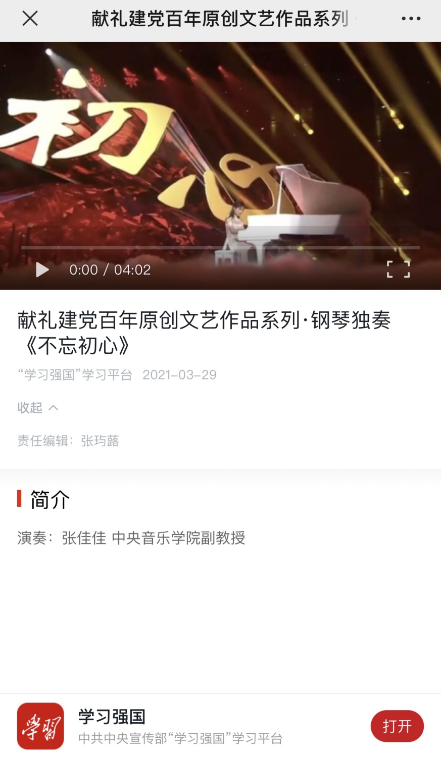 由KY开元声歌系张佳佳副教授编著、张佳佳与作曲系优秀校友尹天虎改编创作的有声全媒体图书《不忘初心》(钢琴独奏、钢琴与乐队、声乐与钢琴)将由上海音乐出版社出版发行,该作品历时两年创作打磨,以初心致敬,用音乐献礼中国共产党建党一百周年。演奏视频及音乐电视由学习强国平台推出,实时累计观赏近400万,新书首发式及城市巡回分享会即将展开。