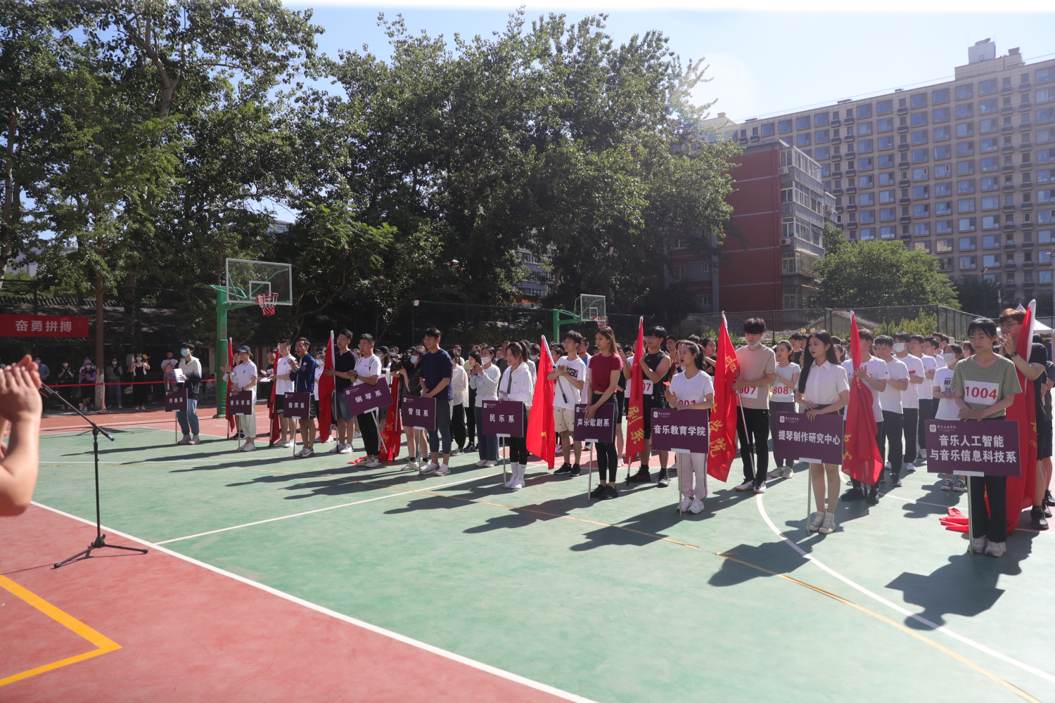 上午8:30,天空碧蓝如洗。在欢快的运动员进行曲中,作曲系、音乐学系、指挥系、钢琴系、管弦系、民乐系、声乐歌剧系、音乐教育学院、提琴制作研究中心、音乐人工智能与音乐信息科技系共十支代表队精神抖擞,手举系牌和系旗依次列队绕场一周进入运动场。