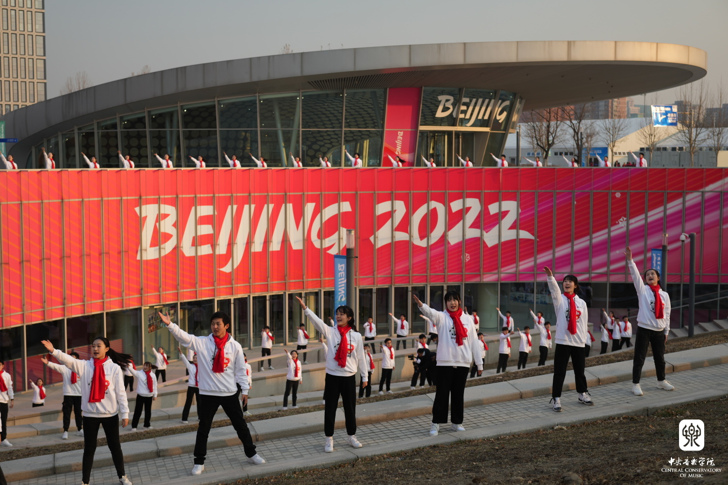北京冬奥村广场区前如火如荼的歌舞