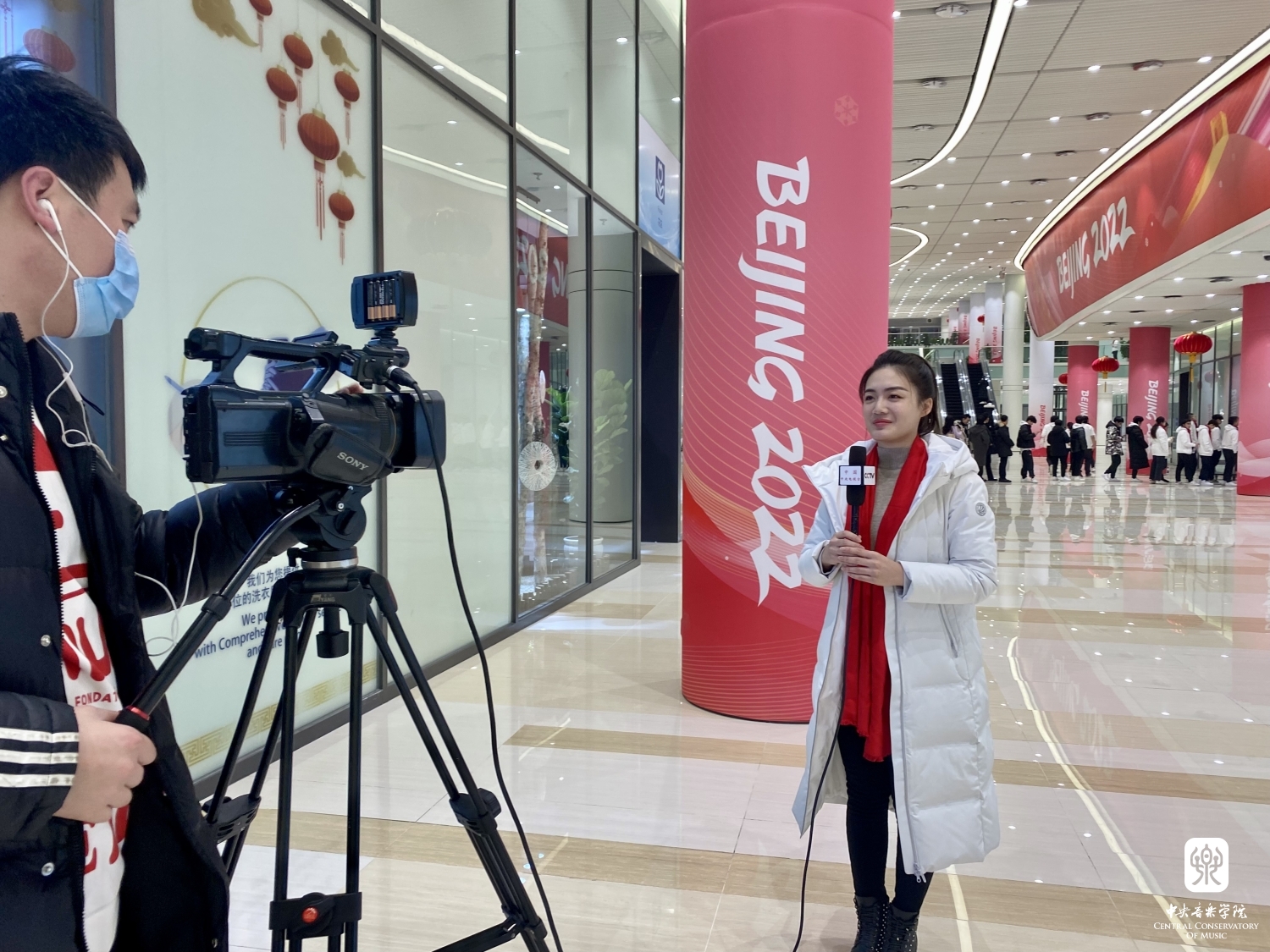 从左至右:导演刘佳、北京冬奥村广场区负责人瞿嵩明、