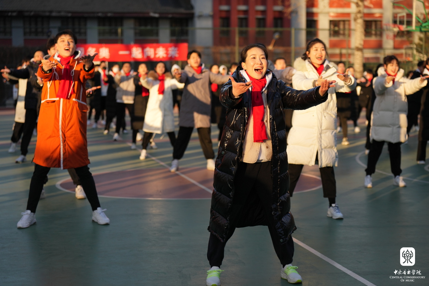 迎着朝阳舞动的央音师生