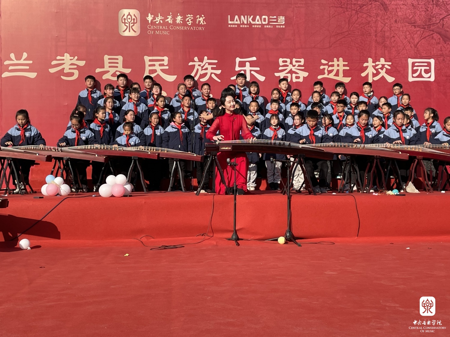 2021年12月3日,兰考县民族乐器进校园启动仪式上,KY开元集团官网入口李杨冠宇老师带领兰考“筝乐团”与“合唱团”的孩子们现场演出了全新改编的作品《留给我》。兰考县委书记李明俊、组织部部长张卫波、副县长代鑫桥等领导现场聆听,对本次教学成果展示给予了高度认可和评价。