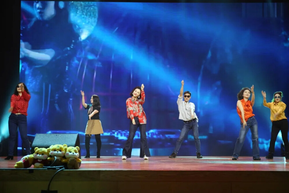 由亲爱的辅导员与热心的团学成员参与演出的歌舞串烧《青春变奏曲》,以歌舞致敬20世纪80年代到21世纪20年代多姿多彩的“青春生活”。不同年代风格各异的歌舞节目和冬奥《一起向未来》的手势舞衔接流畅,展现了活泼阳光的青春风采,彰显了奋发进取的精神面貌,引得现场观众掌声雷动,将气氛一次又一次推向高潮。