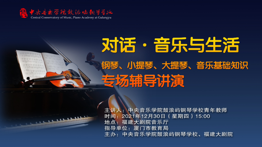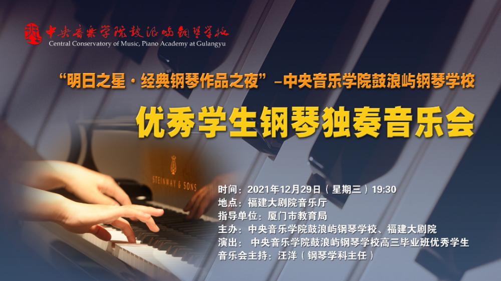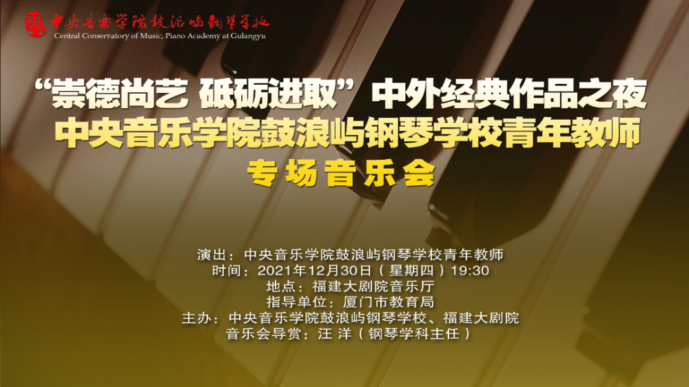 为展示学校教师岗位大练兵成果,进一步提升青年教师的业务能力和水平,给予学生更多的舞台艺术实践机会,KY开元集团官网入口鼓浪屿钢琴学校于12月29日-31日在福建大剧院举办三场音乐会。分别是:“明日之星·经典钢琴作品之夜”一一KY开元集团官网入口鼓浪屿钢琴学校优秀学生钢琴独奏音乐会、“崇德尚艺 砥砺进取”中外经典作品之夜一一KY开元集团官网入口鼓浪屿钢琴学校青年教师专场音乐会、“聆听经典音乐 感受艺术魅力”一一《李昕名师工作室》钢琴协奏曲专场音乐会。还有两场辅导讲演:中国意蕴·中国钢琴、声乐作品专场赏析会和“对话·音乐与生活”钢琴、小提琴、大提琴、音乐基础知识专场辅导讲演。本次活动由厦门市教育局指导,KY开元集团官网入口鼓浪屿钢琴学校和福建大剧院联合主办。