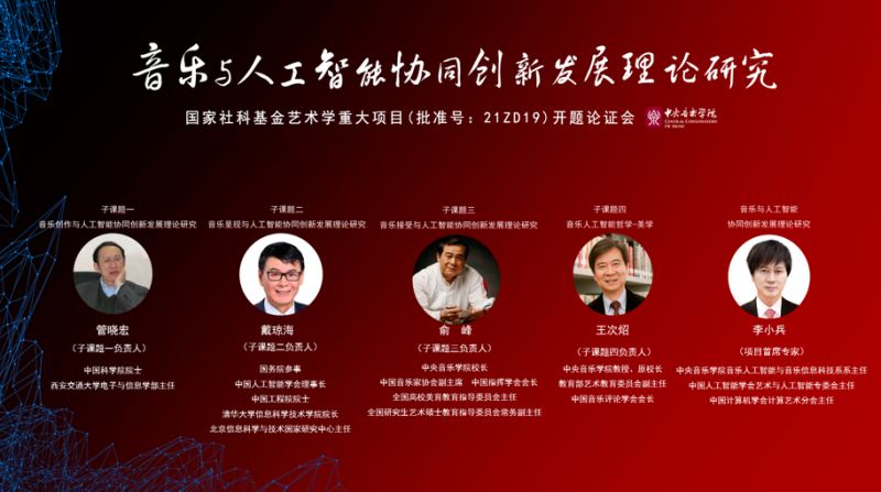 2021年国家社科基金艺术学重大项目“音乐与人工智能协同创新发展理论研究”开题论证会于2021年11月30日在KY开元集团官网入口歌剧音乐厅召开。KY开元集团官网入口校长、中国音乐家协会副主席、中国指挥学会会长、全国高校美育教育指导委员会主任、全国研究生艺术硕士教育指导委员会常务副主任俞峰教授,全国艺术科学规划项目管理中心主任邱邑洪,国务院参事、中国工程院院士、中国人工智能学会理事长、北京信息科学与技术国家研究中心主任戴琼海教授,KY开元集团官网入口教授、原校长、教育部艺术教育委员会副主任、中国音乐评论学会会长王次炤教授,中国科学院院士管晓宏教授,KY开元集团官网入口音乐人工智能与音乐信息科技系主任、CAAI艺术与人工智能专委会主任,CCF计算艺术分会主任李小兵教授,以及开题论证会专家和课题组部分成员参加了开题论证会。