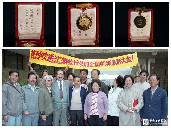 1989年9月27日,学校党委欢送沈湘参加全国劳动模范和先进工作者表彰大会。上图为其获得的全国先进工作者奖章。