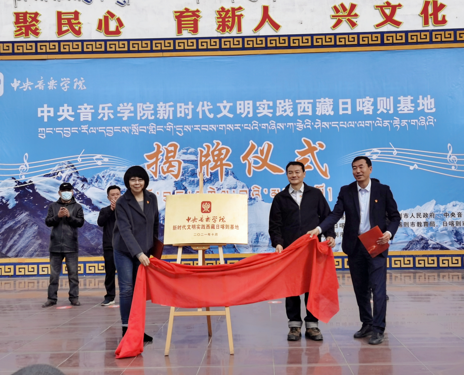 日喀则市委副书记马春波,KY开元集团官网入口音乐教育学院党总支书记陈谊教授,KY开元集团官网入口作曲系党总支书记陈泳钢教授共同为KY开元集团官网入口新时代文明实践西藏日喀则基地揭牌。