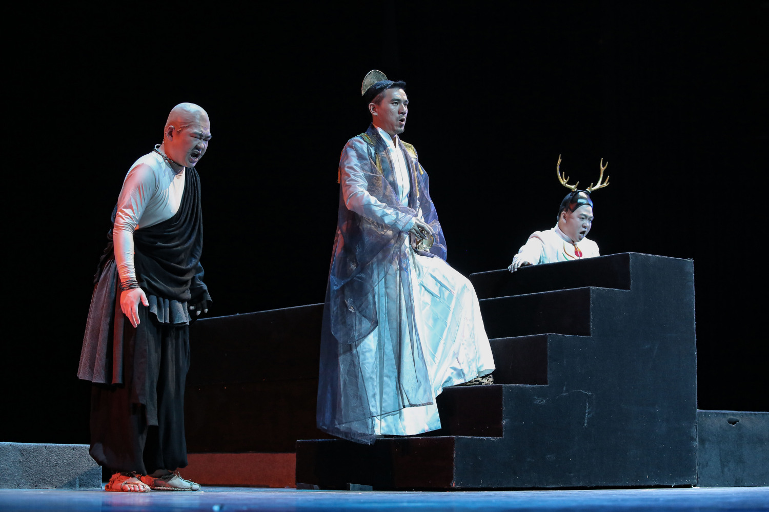 王一涵的获奖作品《霸王别姬》,立足于广为传颂的历史故事,参考同名京剧剧本的情节及《史记·项羽本记》中的记载,讲述了西楚霸王项羽被困垓下、告别虞姬,最终自刎乌江的剧情。这部作品中,作者转化观察历史的视角,着眼于思考一代枭雄项羽的心理防线被三重现实击溃的过程;并在最终“认命不认输”的立意中,塑造西楚霸王虽败犹荣的英雄形象。另外,在战争困局中设置“虞姬”象征极致的“美好”,增加戏剧冲突性、使霸王形象更立体。结构上,设置首尾两段船夫在“戏外”对霸王的歌颂,既表现了“历史终将淡忘成败、却会记住英雄”的辉煌与平衡,又探讨了“古今多少事,尽付笑谈中”的天地不仁和世事沧桑。音乐语言上,试图探索“从文化的深层出发融入中国传统”的音乐语汇和写作方式,以期在当代的语境下传承和展现中国音乐的真正“韵味”。