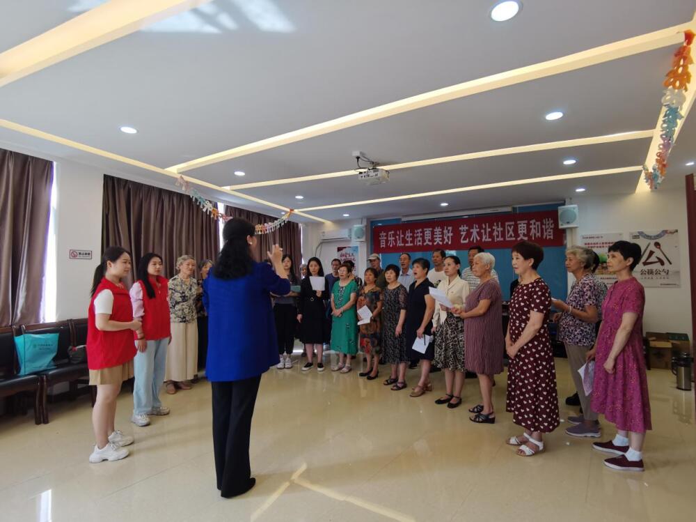 为充分发挥老年教育在社区振兴战略中的积极作用,引导和发动群众主动投身美好社区建设中来,来自指挥系党总支的文艺小分队成员指导社区合唱团发声、吐字、手把手教大家指挥手势并联合高歌《我和我的祖国》。合唱以其特有的群众基础,让指挥系党员师生学以致用深入基层、促进社会和谐,这是本次指挥系党总支党建活动的意义体现。用艺术点亮生活,实现文艺振兴社区。现场文艺氛围浓厚,群情激昂。
