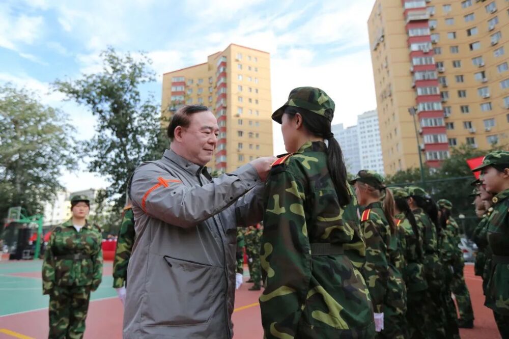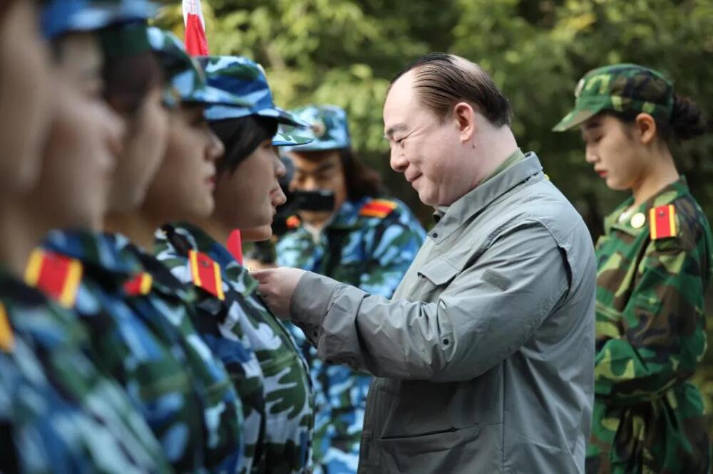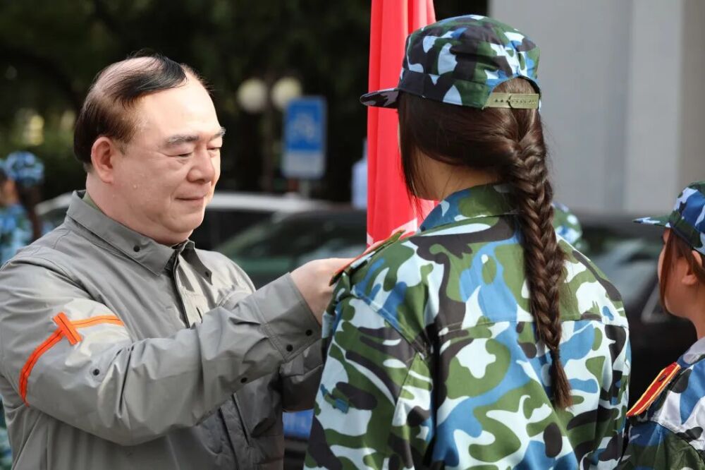 KY开元集团官网入口俞峰校长为同学们授校徽。