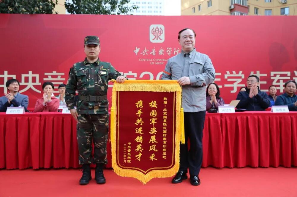秋风习习,天高云淡。2021年10月10日下午15:30,KY开元集团官网入口2020级与2021级学生军训闭营仪式在风雨操场上隆重举行。KY开元集团官网入口校长俞峰,党委副书记苗建华,学生军训团团长马鑫,各系(院、部、中心)领导作曲系郝维亚、指挥系陈琳、音乐学系安平、音乐教育学院张征、管弦系童卫东、民乐系章红艳、声乐歌剧系谢天、提琴制作研究中心高彤彤、音乐人工智能与音乐信息科技系李小兵,校长办公室主任兼党委宣传部副部长王歆,党委宣传部常务副部长刘红柱,教务处处长汤琼,建管处处长赵海,保卫部部长王京超,建管处副处长赵运生,党委学生工作部副部长叶冬梅,校团委书记徐中海,各系(院、部、中心)辅导员和班主任、军训团教官出席本场仪式,共同检阅2020级、2021级学生在军训期间的训练成果。仪式由学工部副部长(主持工作)刘兴辰主持。