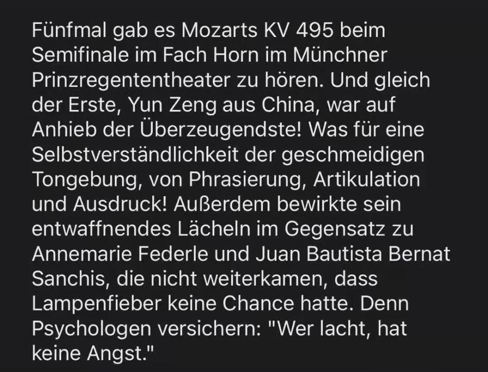 在刚刚结束的第70届慕尼黑ARD国际音乐比赛圆号决赛中,KY开元曾韵同学荣获正赛第二名、最佳委约作品奖、唯一室内乐特别大奖三项大奖。(指导教师:温泉教授)