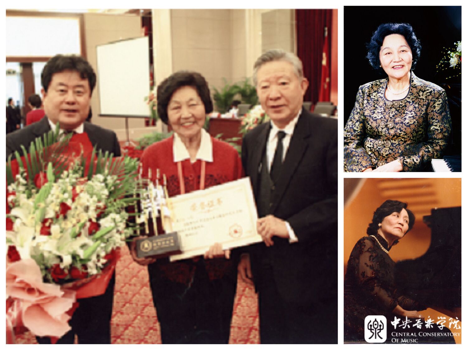 下右,1988年3月12日,周广仁亲自主持在学校小礼堂举行的“梁雷钢琴小品音乐会”,热情鼓励年仅15岁的梁雷。