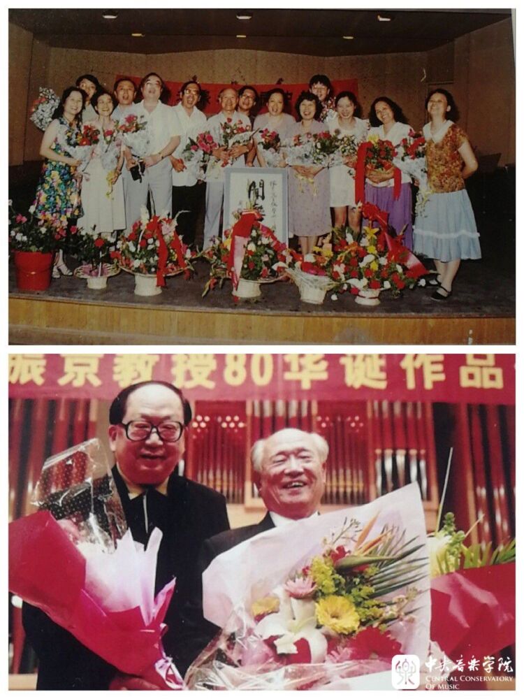 1996年,同学们自发为我举办了一场“庆祝何振京老师从事民间音乐教学40周年”的活动。那是学校历史上少有的为共同课老师举办的庆祝活动,来了很多人,鲍元凯教授更是从天津“打的”赶来,主持了这场“几代学生、校友同堂歌会”。一些因身体或其他原因无法到现场的老师、校友,如年事已高、居家休养的喻宜萱教授和远在加拿大的作曲家黄安伦、身在乌鲁木齐的指挥家吴灵芬等,也给我打来电话表示祝贺。
