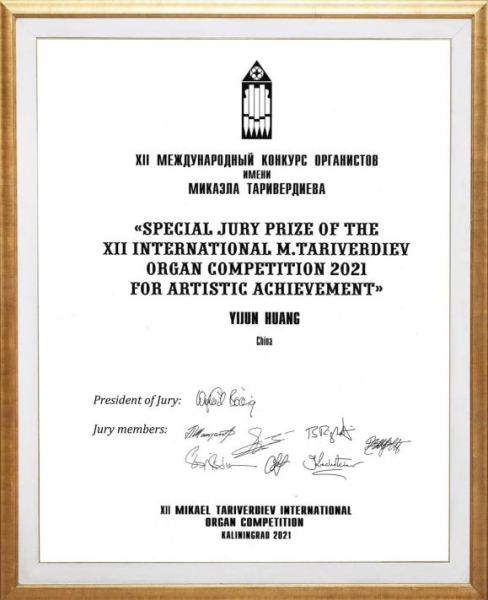2021年获得塔里维尔季耶夫国际管风琴比赛“艺术成就奖”第一名。