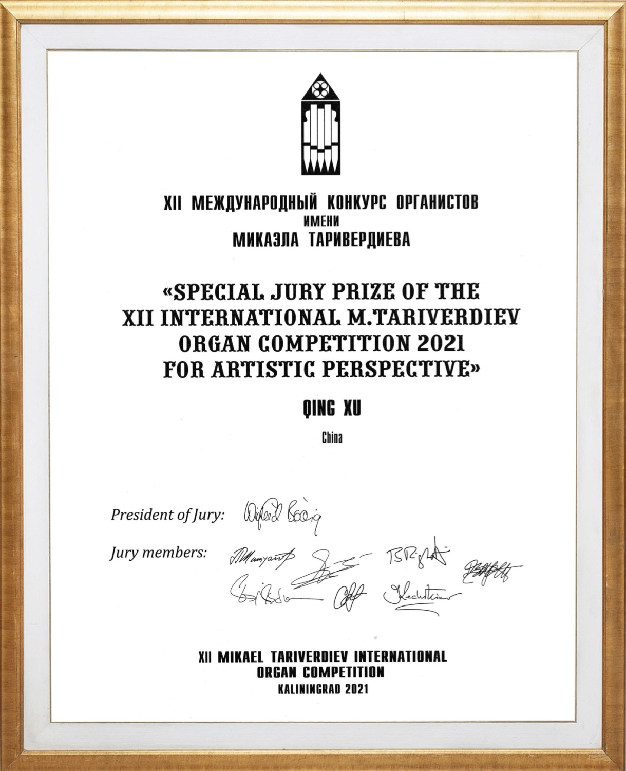 2021年获得塔里维尔季耶夫国际管风琴比赛“最佳视角奖”。