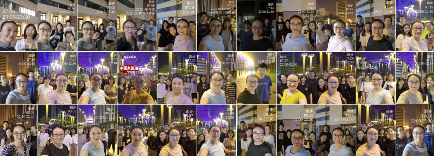 在今年暑假期间,沈媛老师带领学生团队没有休息、留在学校集训,每天8:00-22:00进行上课、彩排、练习。22:00在琴房关门后沈媛老师带领学生们跑步,为备战大赛加强体能。