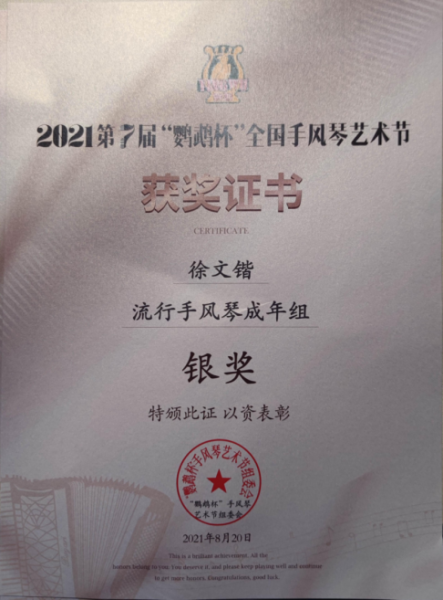 在此,向各位获奖学生及手风琴教学团队曹晓青教授、许笑男老师、许可卿老师表示祝贺!