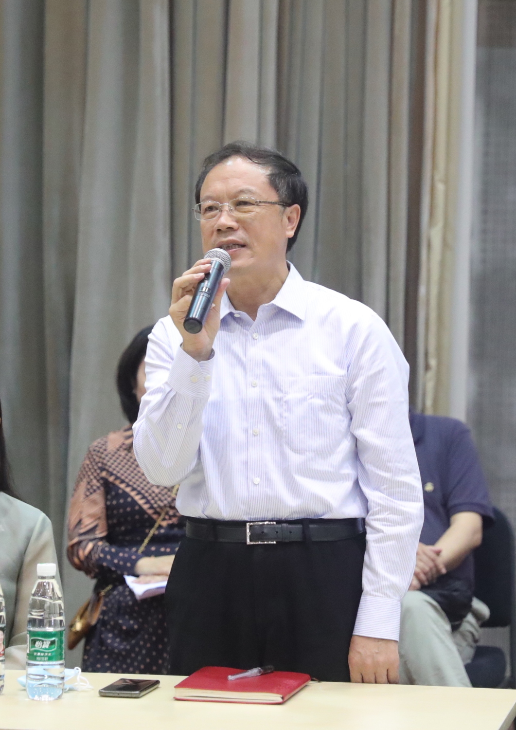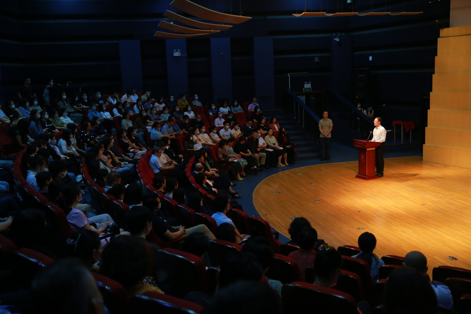 赵旻书记向全体教师提出三点要求,一是要抓好理论学习,提高思想政治素质。广大教师要紧跟党中央战略部署,全面贯彻党的教育方针,掌握正确育人方向和目标,落实立德树人根本任务,坚持不懈用党的创新理论武装头脑、指导实践、推动工作。同时,要将理论学习与个人业务发展、事业发展相结合,激发学习动力,为成长发展补钙加油。二是要增强教师育人责任。教师承担着传播知识、传播思想、传播真理的历史使命,肩负着塑造灵魂、塑造生命、塑造新人的时代重任。要争做“四有好老师”,发挥自身的积极性、主动性、创造性,时刻规范自己的行为,培育一代代优秀人才。三是要加强课程思政建设。发挥课程育人作用,“修好一段渠,种好责任田”,将价值引领贯穿至课堂之中,使每一门课程都能够挖掘出育人元素、思想教育元素、传播真理和引领生命的元素。课程思政的主要渠道是课堂,要抓好教学大纲、教材、教案、教学内容,在潜移默化中塑造学生人格。
