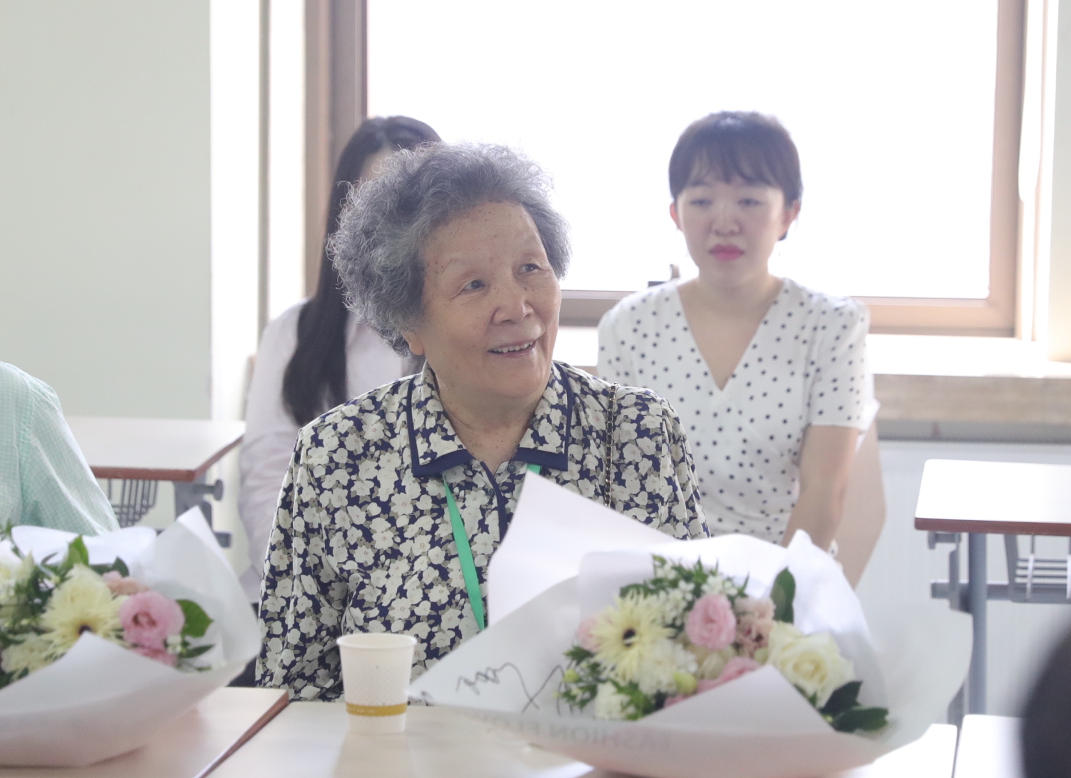 青年教师向老教师献花