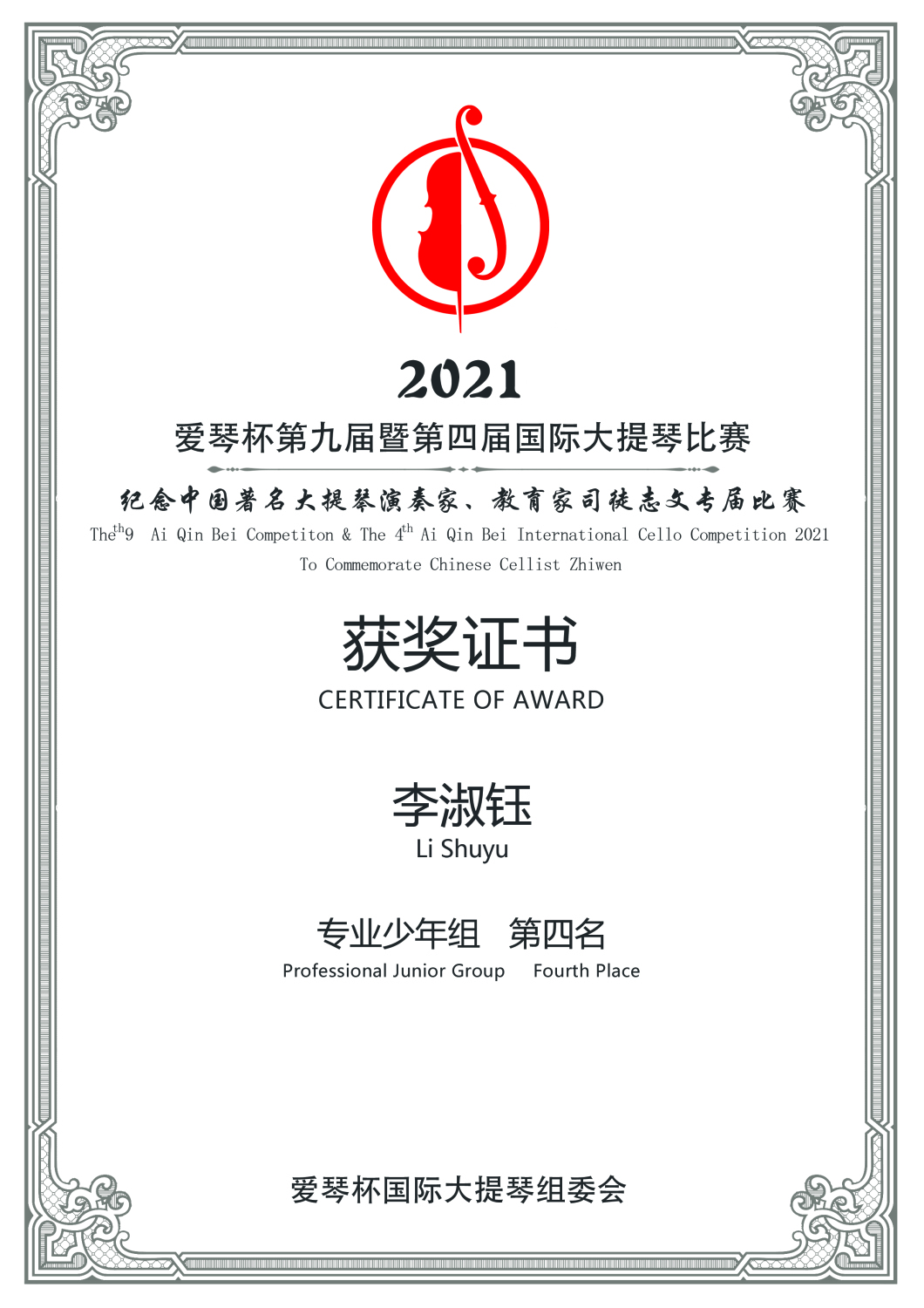在刚刚结束的第九届暨第四届爱琴杯国际大提琴比赛中,KY开元多名学生获得专业组重大奖项。