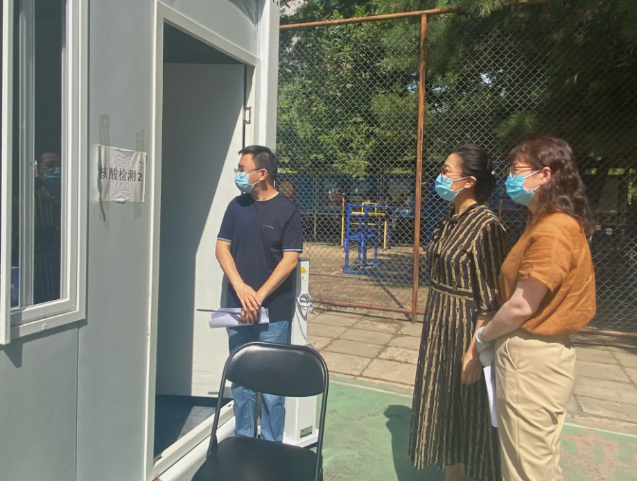 检查组以“四不两直”方式对教学楼施工处、核酸检测点、学生公寓与食堂进行实地查看,并通过现场询问、查阅台账等形式对重点人群核酸检测、校园疫情常态化防控、施工安全、物资储备等方面进行了深入了解,对发现的问题及时通知相关部门整改、关注。